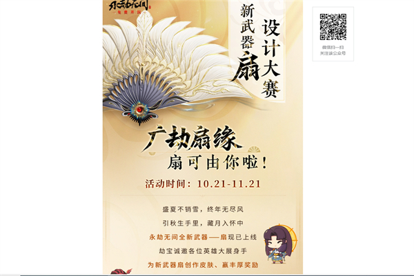永劫无间广劫扇缘活动是游戏官 方给玩家们自主设计武器扇子的一个活动,玩家可自行报名参与,在一些媒体平台发表自己的设计同时@官 方即可,如若玩家的作品被选中还会有丰厚奖励等着你。